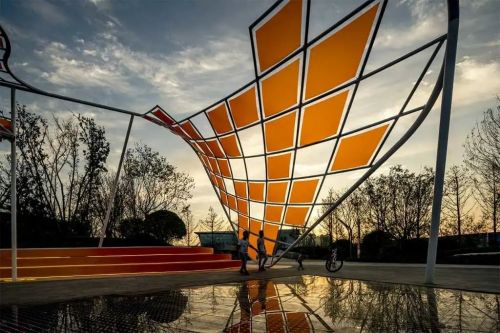 一個好看且具有創(chuàng)意的廊架不僅能提升人們的體驗感還增加了整個設計的空間感精心設計的廊架往往是公共空間一道靚麗的風景線成都邦泰寬語 / 澳博景觀日暮已致,漂浮在島嶼上的廊架,金屬質(zhì)感背后,昏黃的光暈染滿..